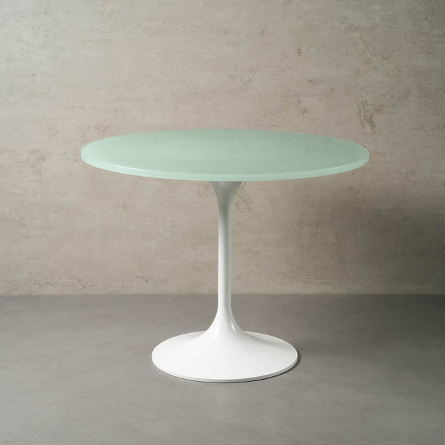 Unser Modell "Tokio" ist ein besonders edler und futuristischer Esstisch mit weißem Gestell aus recyceltem Metall und aufliegender Platte aus MAGNA Glaskeramik. Das Design ist inspiriert an der gleichnamigen, unkonventionellen Stadt in Japan.