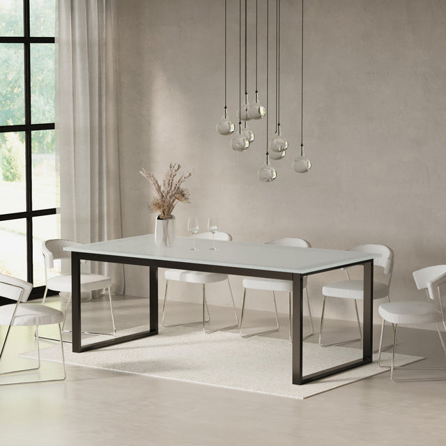 Unser Modell "Bergen" ist ein minimalistisch-eleganter und massiver Esstisch, der durch das Zusammenspiel der extravaganten Glaskeramik-Platte und dem minimalistischen Gestell überzeugt. Das zeitlose Design erinnert an die norwegische Stadt Bergen, wo Berge und Architektur miteinander harmonieren.
