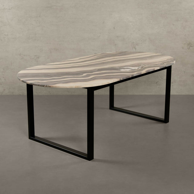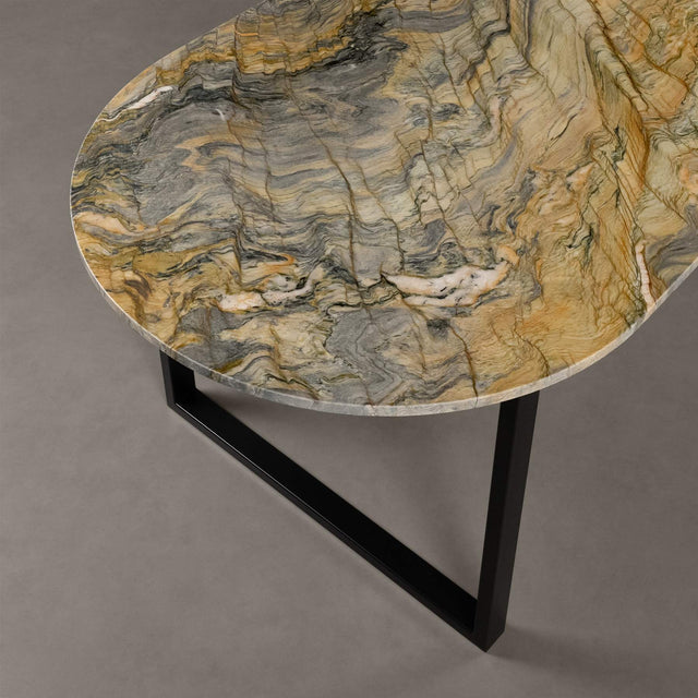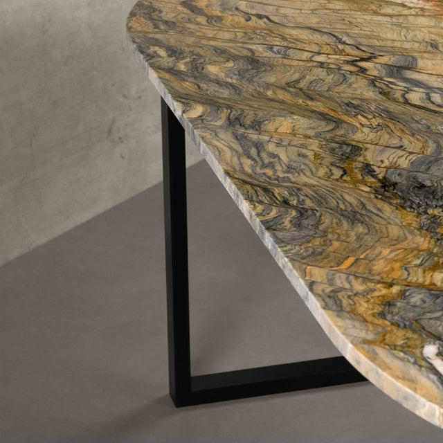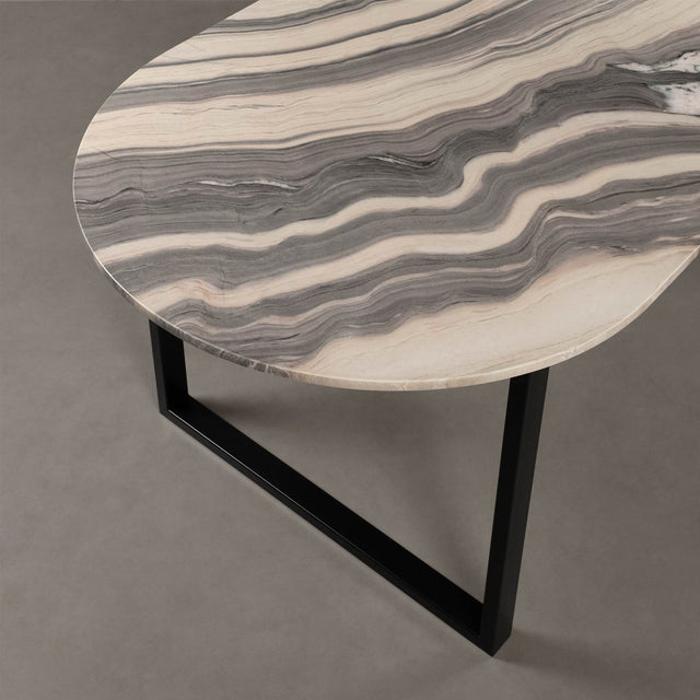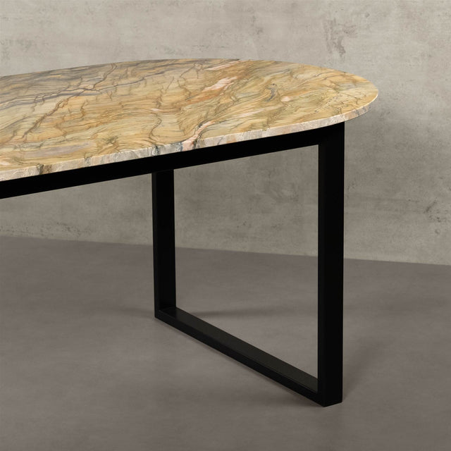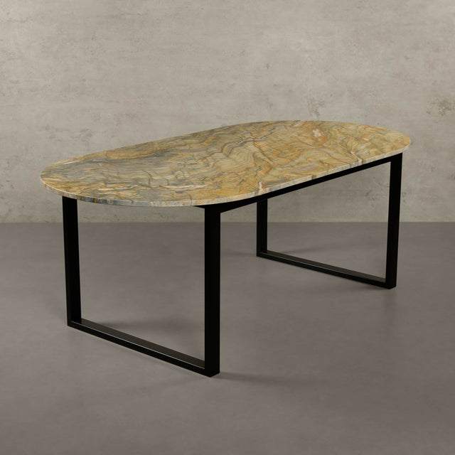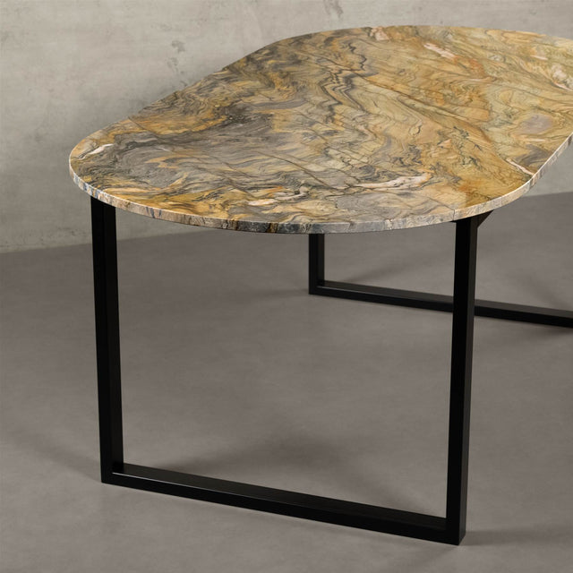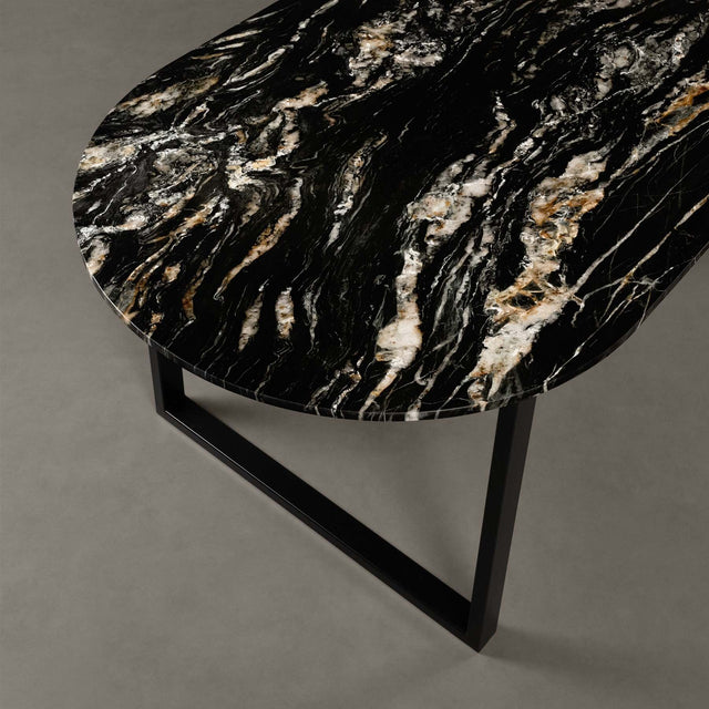Das Modell "Bergen" ist ein ovaler, minimalistisch-eleganter und massiver Esstisch, der durch das Zusammenspiel der extravaganten Natursteinplatte und dem simplen Gestell überzeugt. Das zeitlose Design erinnert an die norwegische Stadt Bergen, wo Berge und Architektur miteinander harmonieren. Der Bergen Esstisch ist Teil unserer Exclusive Line, die sich durch limitierte und besonders exotische Natursteine auszeichnet.