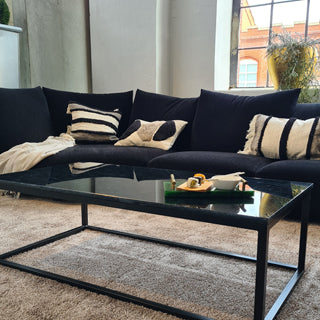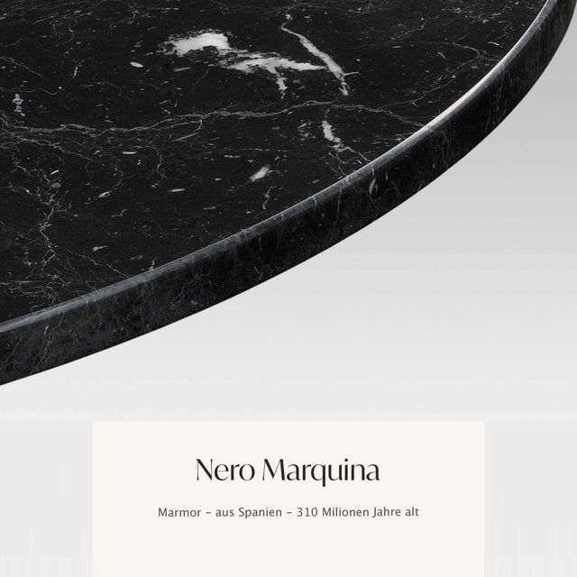 Ein geaderter und 320 Millionen Jahre alter Kalkstein aus Spanien, der in Marquina abgebaut wird. Die auffälligen weißen Adern auf einer tiefschwarzen Grundfarbe verleihen Nero Marquina Marmor ein luxuriöses und kontrastreiches Erscheinungsbild. Er ist auch etwas empfindlicher gegenüber Säuren und Kratzern, daher erfordert er eine vorsichtige Handhabung und die Vermeidung von direktem Kontakt zu Getränken und Speisen, um seine Schönheit zu bewahren.