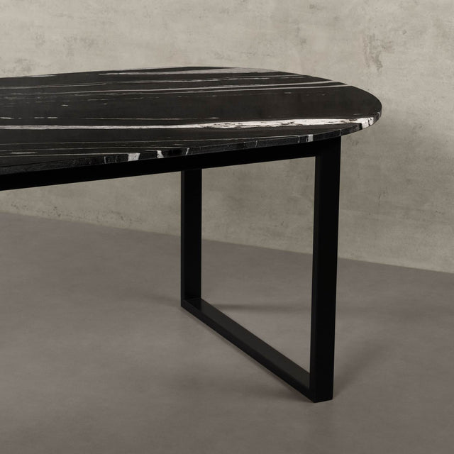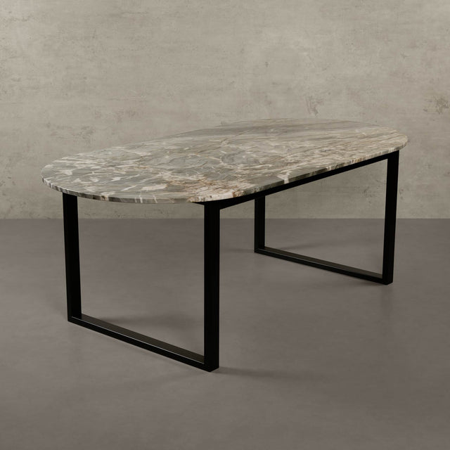 Unser Modell "Bergen" ist ein minimalistisch-eleganter und massiver Esstisch, der durch das Zusammenspiel der extravaganten ovalen Natursteinplatte und dem simplen Gestell überzeugt, welches vorwiegend aus recyceltem Metall hergestellt wurde. Das zeitlose Design erinnert an die norwegische Stadt Bergen, wo Berge und Architektur miteinander harmonieren.
