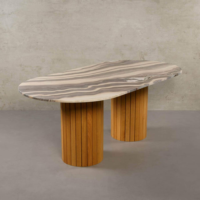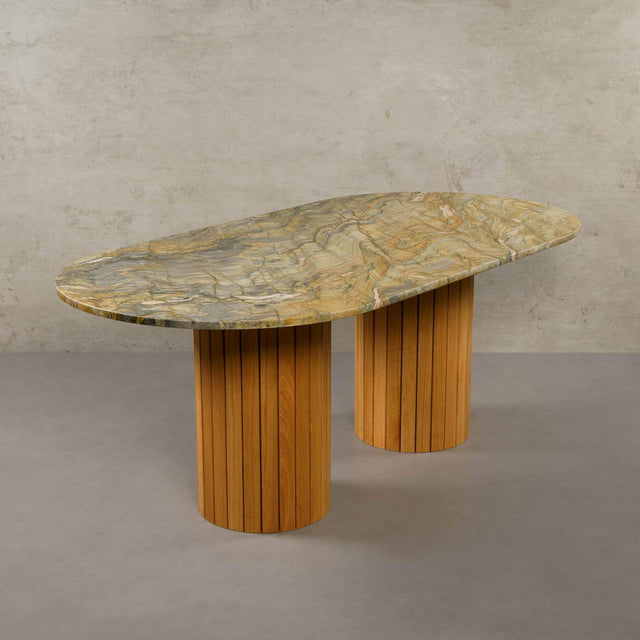 Unser Modell "Montana" bringt als massiver Esstisch das Beste aus allen Welten zusammen: ein minimalistisches-modernes Design, natürliche Materialien und zeitlose Eleganz. Die Tischbeine aus Eichenholz erinnern an den waldreichen US-Staat Montana, wo Berge und Architektur miteinander harmonieren. Der Montana Esstisch ist Teil unserer Exclusive Line, die sich durch limitierte und besonders exotische Natursteine auszeichnet.
