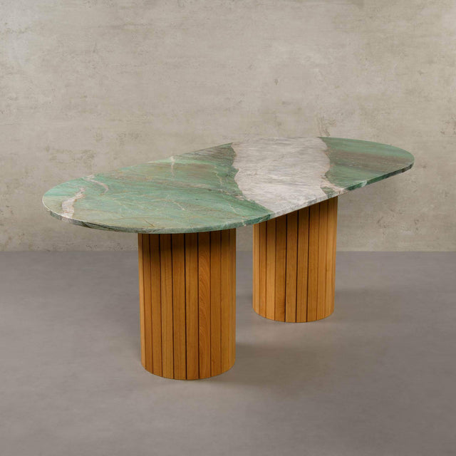 Der Botanic Wave Quarzit, ein 550 Millionen Jahre alter Metamorphit, wird in der brasilianischen Region Minas Gerais zwischen Diamantina und Valadares abgebaut. Dieser einzigartige Naturstein besticht durch sein smaragdgrünes Farbspiel, durchzogen von markanten weißen und braunen Adern. Botanic Wave ist deutlich widerstandsfähiger als herkömmlicher Marmor und weniger empfindlich gegenüber Flecken.