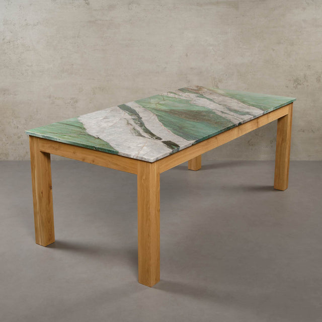 Der Botanic Wave Quarzit, ein 550 Millionen Jahre alter Metamorphit, wird in der brasilianischen Region Minas Gerais zwischen Diamantina und Valadares abgebaut. Dieser einzigartige Naturstein besticht durch sein smaragdgrünes Farbspiel, durchzogen von markanten weißen und braunen Adern. Botanic Wave ist deutlich widerstandsfähiger als herkömmlicher Marmor und weniger empfindlich gegenüber Flecken.