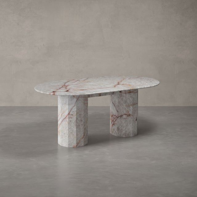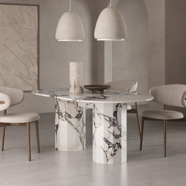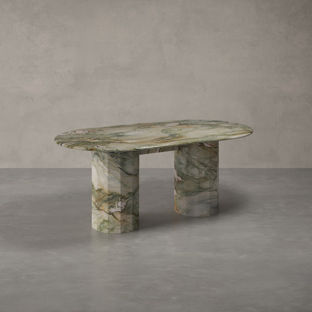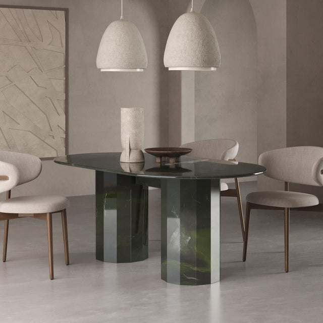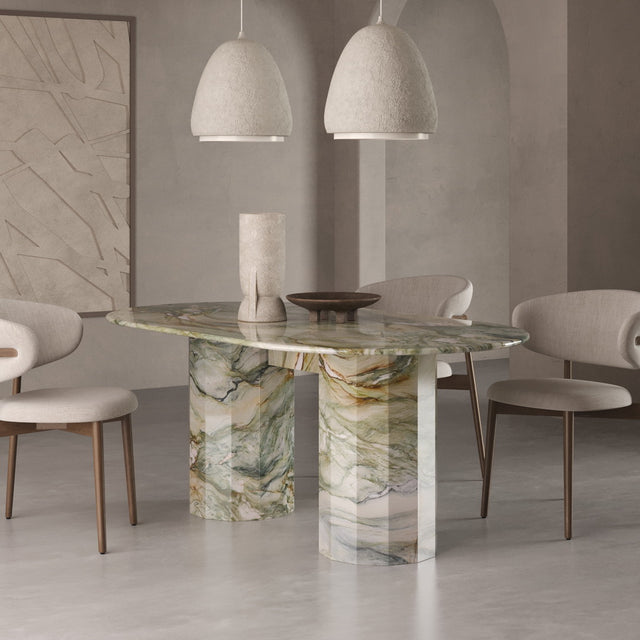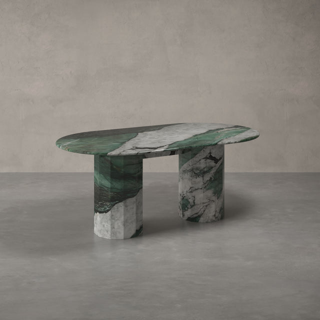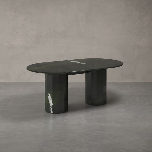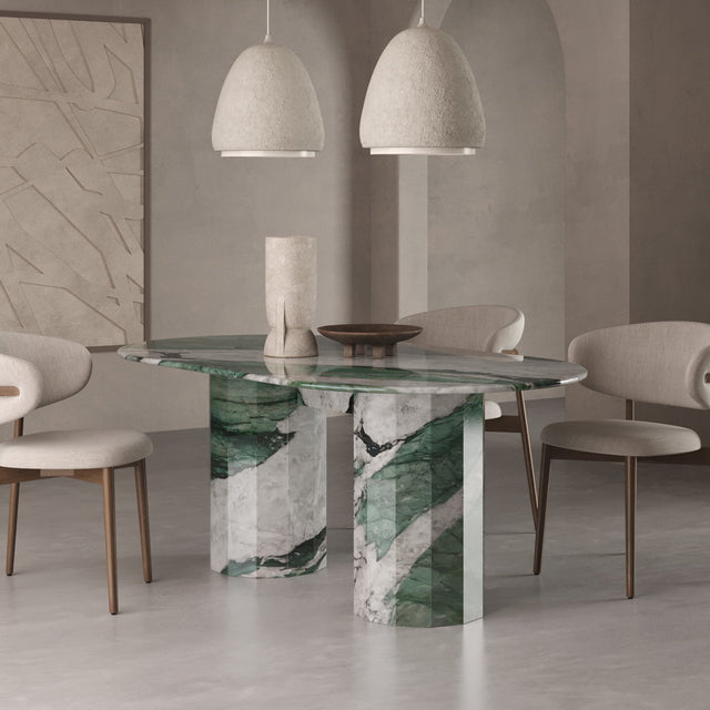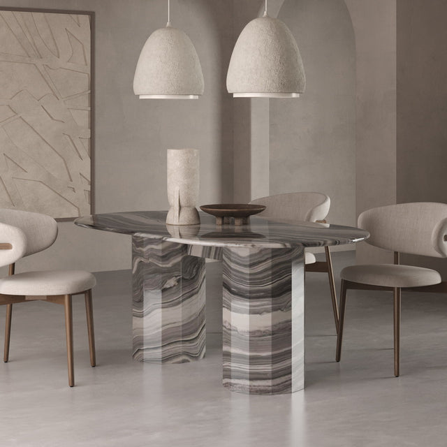 Unser Modell "MONACO" bringt als massiver Esstisch das Beste aus allen Welten zusammen: ein minimalistisches-modernes Design, natürliche Materialien und zeitlose Eleganz. Hergestellt aus 100% Naturstein und zwar dem seltenen und hochwertigen Calacatta Viola, der gerade einer der ganz großen Trends im Luxusbereich weltweit ist.  Die sogenannte "bull nose" Kante des Tisches ist 4cm stark und der Monaco Esstisch ist Teil unserer Exclusive Line, die sich durch limitierte und besonders exotische Natursteine auszeichnet. Dieser Tisch ist 180cm lang und über 260kg schwer. Keine Angst: Wir tragen ihn natürlich wohlbehalten in Ihr Esszimmer. Ideal für Alle, die erstmal nicht mehr umziehen möchten.
