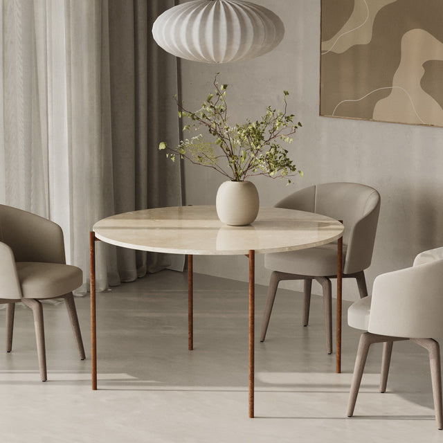 Ein 320 Millionen Jahre alter dunkelbrauner Stein, der in der Nähe von Valencia in Spanien seinen Ursprung findet. Mit seinen warmen braunen Grundfarben und weißen Adern hat der Emperador Marron Marmor ein elegantes und natürliches Muster. Aufgrund seiner Empfindlichkeit gegenüber Säuren und Kratzern ist es wichtig, direkten Kontakt mit Speisen und Getränken zu vermeiden und den Marmor regelmäßig mit Imprägnierung zu schützen.