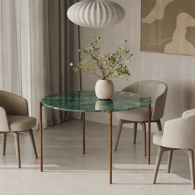 Ein tiefgrüner und 163 Millionen Jahre alter Naturstein aus Indien. Verde Guatemala Marmor zeigt eine lebendige, gleichmäßige Grüntöne, die ihm ein charaktervolles und ästhetisch ansprechendes Aussehen verleihen. Um seine Schönheit langfristig zu bewahren, ist es wichtig, direkten Kontakt mit Speisen und Getränken zu vermeiden, da er empfindlich gegenüber Säuren ist.