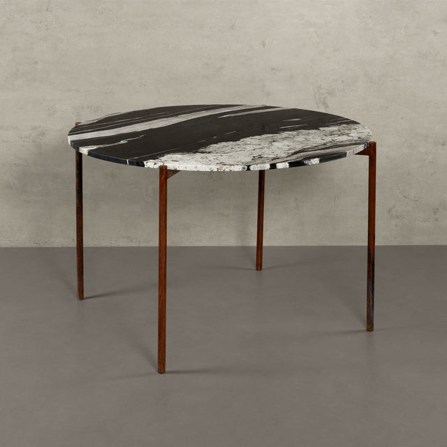 Auf vielfachen Wunsch haben wir unseren Topseller Couchtisch ROM nun auch als Esstisch konzipiert. Unser Modell "Rom" ist ein filigraner und zeitloser Esstisch, der durch das Zusammenspiel der extravaganten, historischen Natursteinplatte und dem minimalistischen Gestell in Rostoptik überzeugt. Die prächtige Natursteinplatte im Zusammenspiel mit dem rostfarbenen Metallgestell erinnert uns an die Weltstadt Rom mit ihrem unvergleichlichen Angebot an historischen und architektonischen Prachtwerken.