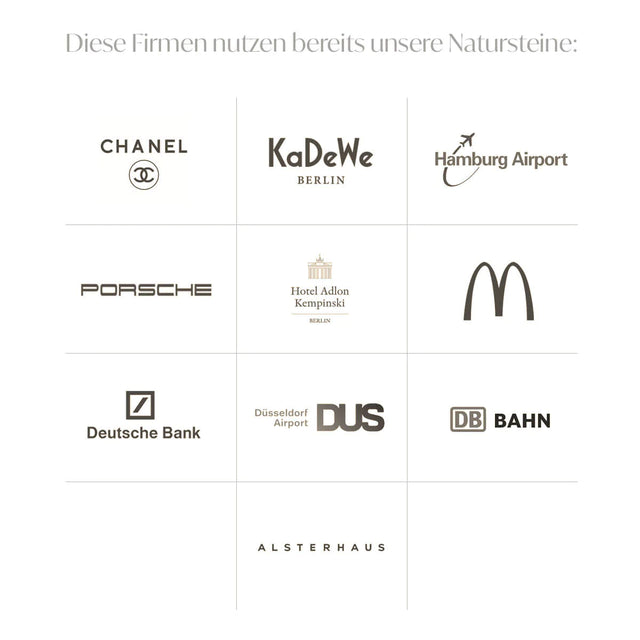Sie können bei diesem Produkt aus 9 Natursteinen wählen. Es versteht sich von selbst, dass wir als Europas führender Natursteinexperte immer die bestmögliche Steinqualität verwenden. Natursteine sind ein Miliionen Jahre alter Schatz der Natur, demnach gleicht natürlich kein Stein dem anderen und unsere Produktbilder sind als Referenzbilder zu verstehen. Unsere Bilder dienen als visuelle Orientierung und die nun folgenden Informationen sollen Ihnen inhaltlich bei der Entscheidung helfen.