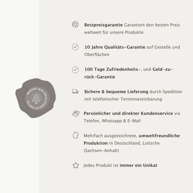 Mit unseren Design-Unikaten holen Sie sich ein echtes Stück Weltgeschichte in Ihr Zuhause, da jeder Naturstein bereits mehrere Millionen Jahre alt ist. Konfigurieren Sie jetzt Ihr Einzelstück. Ihr Wunschprodukt wird in unserer umweltfreundlichen Produktion in Loitsche (Sachsen-Anhalt) für Sie hergestellt.