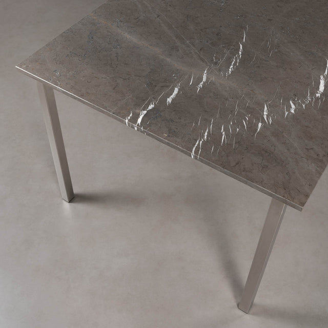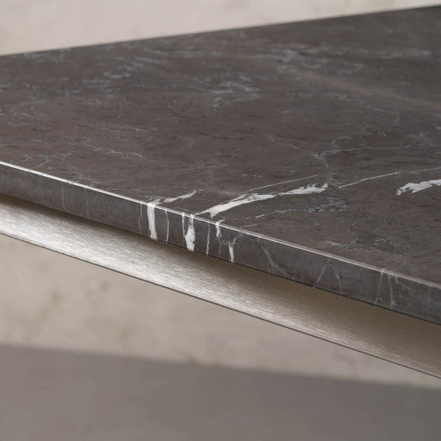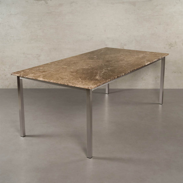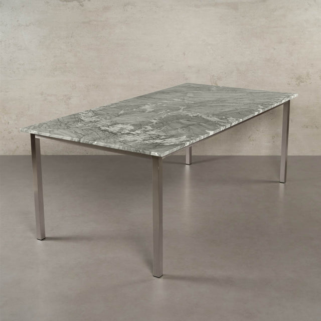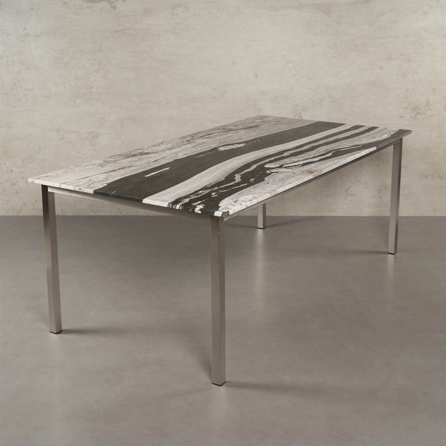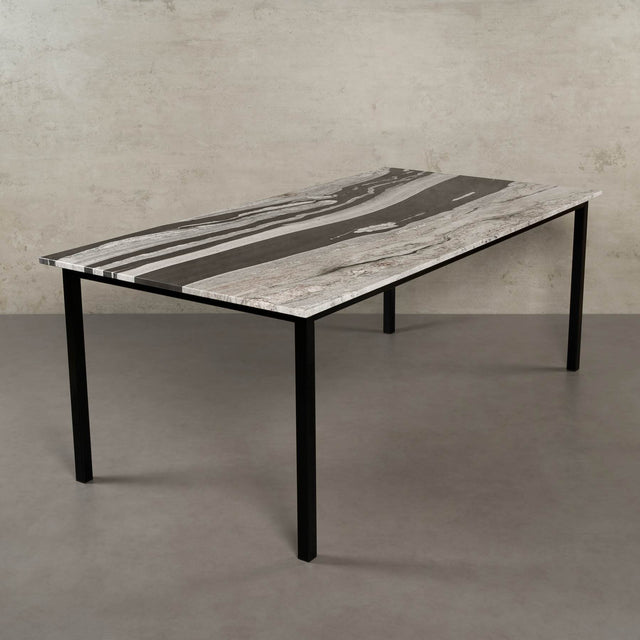 Unser Modell "Sapporo" ist ein minimalistisch-eleganter Esstisch, der durch das Zusammenspiel der extravaganten Natursteinplatte und sein simples Gestell überzeugt. Das modern-industrielle Design erinnert an die japanische Stadt Sapporo.
