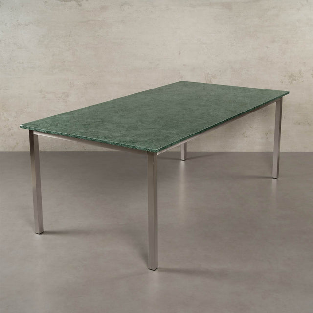 Ein tiefgrüner und 163 Millionen Jahre alter Naturstein aus Indien. Verde Guatemala Marmor zeigt eine lebendige, gleichmäßige Grüntöne, die ihm ein charaktervolles und ästhetisch ansprechendes Aussehen verleihen. Um seine Schönheit langfristig zu bewahren, ist es wichtig, direkten Kontakt mit Speisen und Getränken zu vermeiden, da er empfindlich gegenüber Säuren ist.