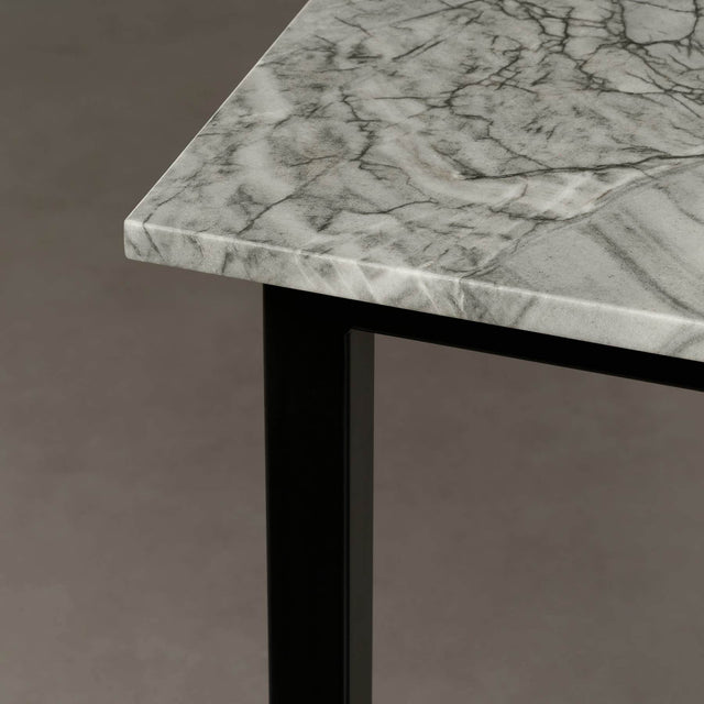 Dunkler Marmor ist empfindlich gegenüber Säuren, deswegen sollten stets Untersetzer für Getränke und Speisen verwendet werden.