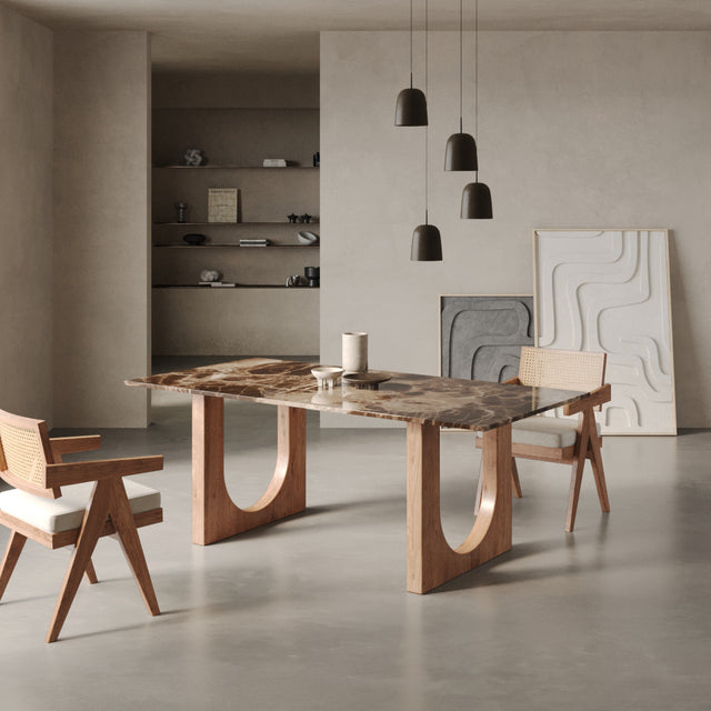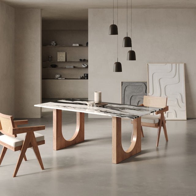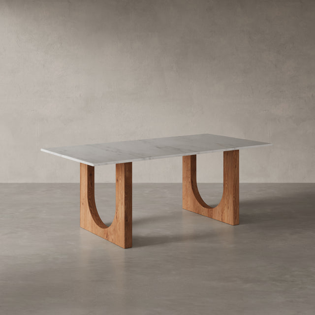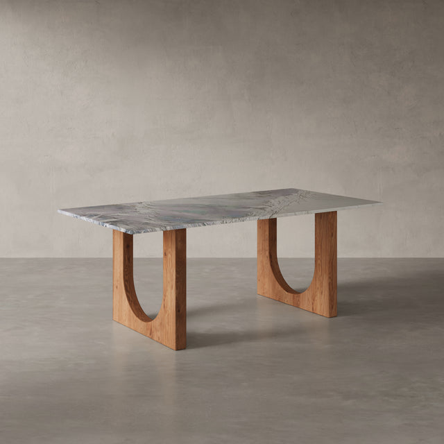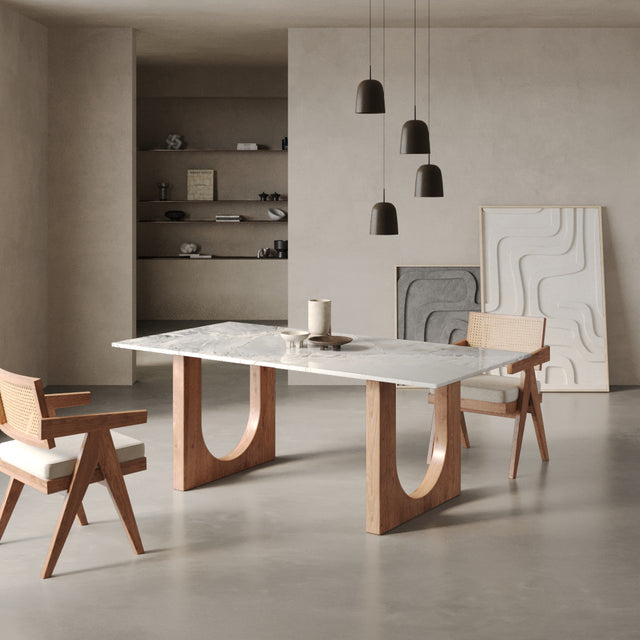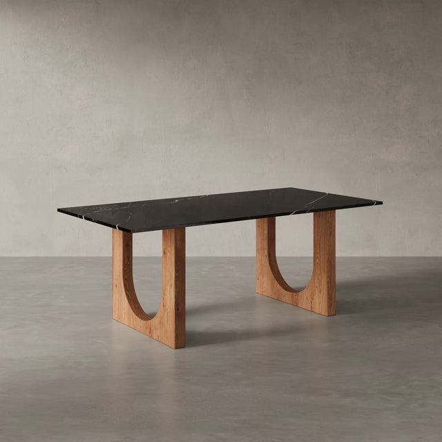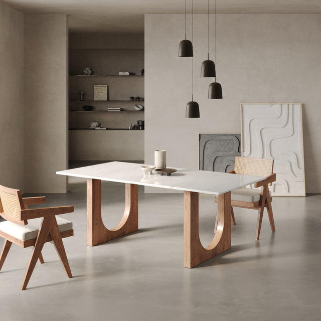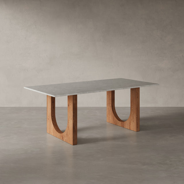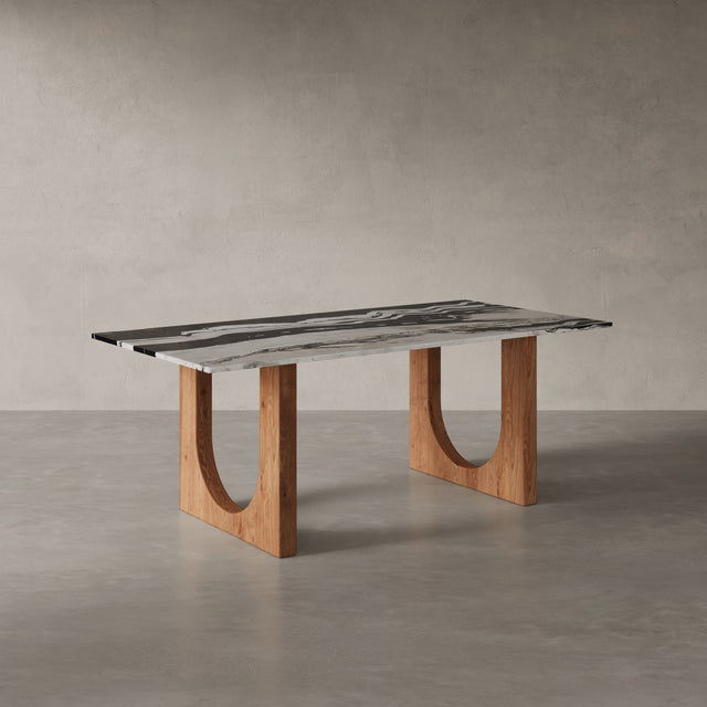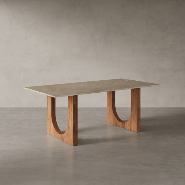 Der Esstisch “Siena” trägt die Wärme und Eleganz der Toskana in sich. Sein markantes U-förmiges Gestell aus Holz erinnert an die Rundbögen italienischer Architektur und verbindet Kraft mit Leichtigkeit. Die klare Formensprache macht Siena zu einem Mittelpunkt des Zusammenseins – ein Tisch für Genuss, Gespräche und gesellige Abende.
