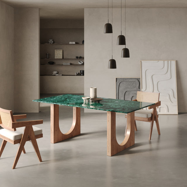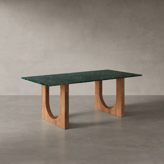 Ein tiefgrüner und 163 Millionen Jahre alter Naturstein aus Indien. Verde Guatemala Marmor zeigt eine lebendige, gleichmäßige Grüntöne, die ihm ein charaktervolles und ästhetisch ansprechendes Aussehen verleihen. Um seine Schönheit langfristig zu bewahren, ist es wichtig, direkten Kontakt mit Speisen und Getränken zu vermeiden, da er empfindlich gegenüber Säuren ist.