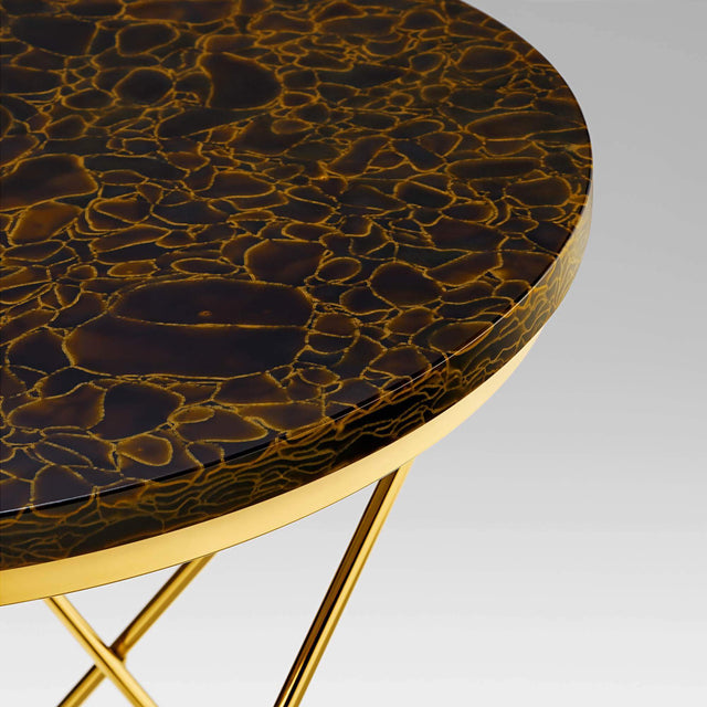 Unser Modell "Paris" bietet durch sein filigranes Gestell aus recyceltem Metall und der runden Platte aus MAGNA Glaskeramik einen eleganten Tisch, der sich stilvoll in jeden Raum integrieren lässt. Im Stil des Art Decó ist das Gestell gold-verchromt und erinnert an die malerischen Cafés in Paris.
