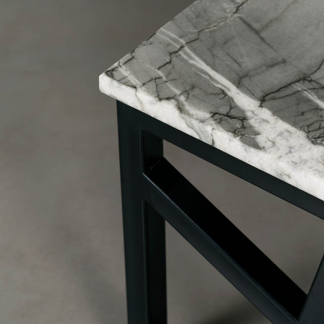 Ein grauer Kalkstein, der bereits über 310 Millionen Jahre alt ist und aus dem Iran stammt. Die  dunkelgraue Grundfarbe mit markanten weißen und hellgrauen Adern ist typisch für Grigio Marquina Marmor und verleihen ihm ein dramatisches und elegantes Erscheinungsbild.