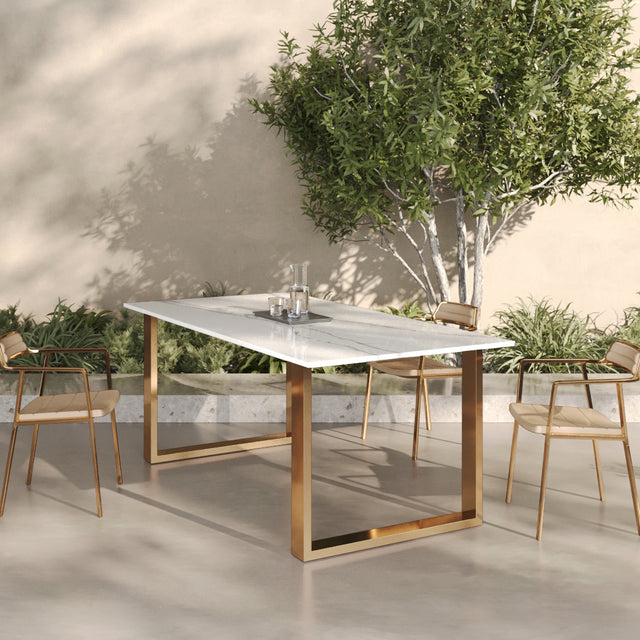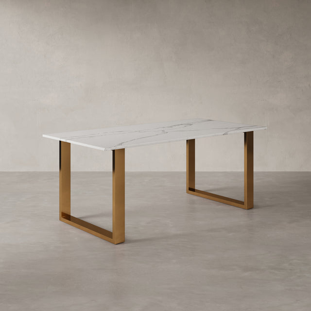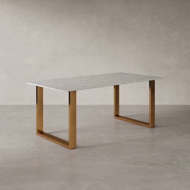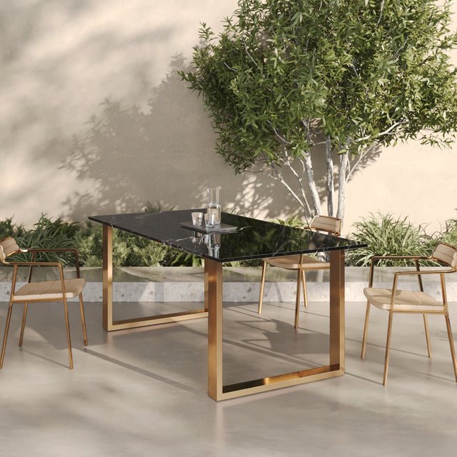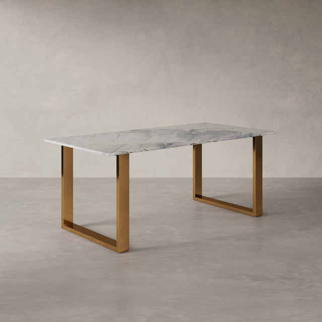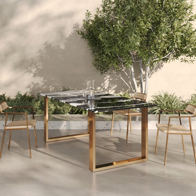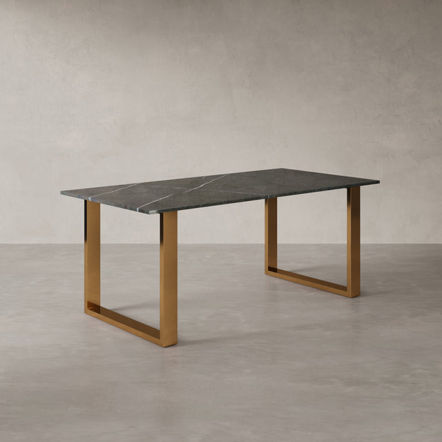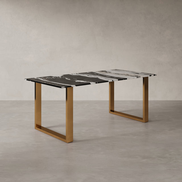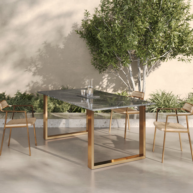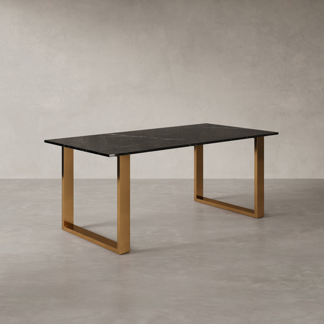 Der Esstisch “Phoenix” trägt den Namen jener Stadt, die aus der Wüste emporragt – ein Sinnbild für Klarheit, Kraft und Erneuerung. Sein kupferfarbenes Metallgestell erinnert an glühende Sonnenuntergänge über den Weiten Arizonas, geradlinig wie die Silhouette einer Skyline und doch erdig wie die Felsen der Sonora-Wüste. Die Natursteinplatte ruht darauf wie ein stiller Horizont – beständig, zeitlos, voller Charakter. So entsteht ein Möbelstück, das den Gegensatz von Hitze und Klarheit, von Naturgewalt und urbaner Eleganz in sich vereint. Phoenix ist ein Symbol für Aufbruch und die ewige Kraft der Elemente.