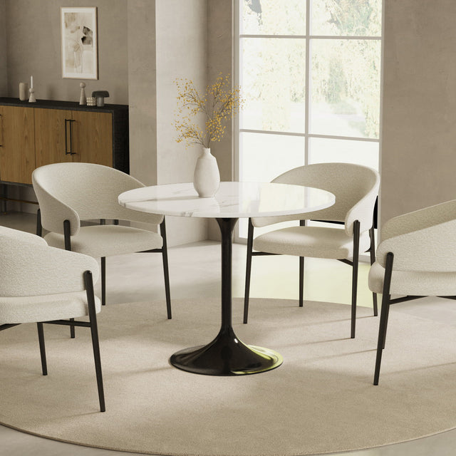 Unser Modell "Tokio" ist ein besonders edler und futuristischer Esstisch mit einem weißen Gestell, das hauptsächlich aus recyceltem Metall hergestellt wurde. Die aufliegende Platte ist massiv und aus einem historischen Naturstein. Das Design ist inspiriert an der unkonventionellen, gleichnamigen Stadt in Japan.