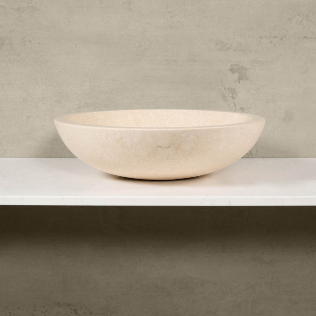 Unser Waschbecken "Tangier" ist inspiriert an dem marokanischen Spa Ort und ist ein ganz besonderer Hingucker für Ihr Badezimmer. Gemeißelt aus dem bekannten Naturstein Crema Marfil eignet es sich nicht nur exzellent für den Nassbereich, sondern verleiht dem ganzen Raum ein besonderes Flair. Die Innenseite ist matt und das Waschbecken wurde vollständig imprägniert und ist durch das 4,5cm große Bohrloch auch direkt einsatzbereit.