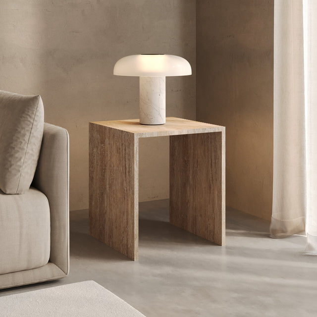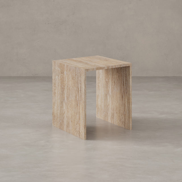 Der Beistelltisch “Arles” ist eine Hommage an die südfranzösische Klarheit. Sein reduziertes, architektonisches Design rückt das Material in den Mittelpunkt: Travertin in seiner reinsten Form – ehrlich, texturiert, voller Geschichte. Die kubische Struktur erinnert an antike Steinarchitektur, doch seine Ausstrahlung ist modern – schlicht, funktional, zeitlos schön. Arles verkörpert das Wesen mediterraner Ästhetik: Natürlichkeit ohne Überfluss, Ruhe ohne Stillstand.
