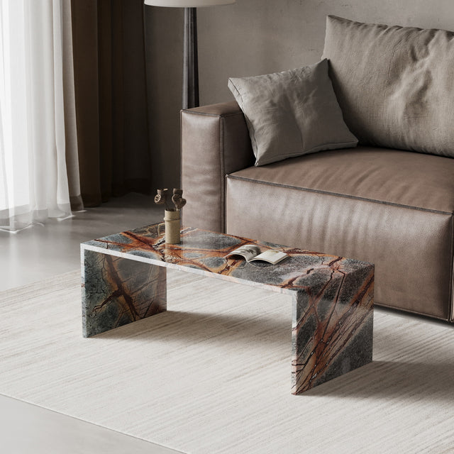 Der Colorado ist ein architektonisch klar definierter Stein-Table, gefertigt aus 100 % echtem Naturstein. Seine präzise U-Form und die langen, monolithischen Flächen verleihen ihm eine elegante, zeitlose Präsenz, die sich nahtlos in moderne Interiors einfügt.