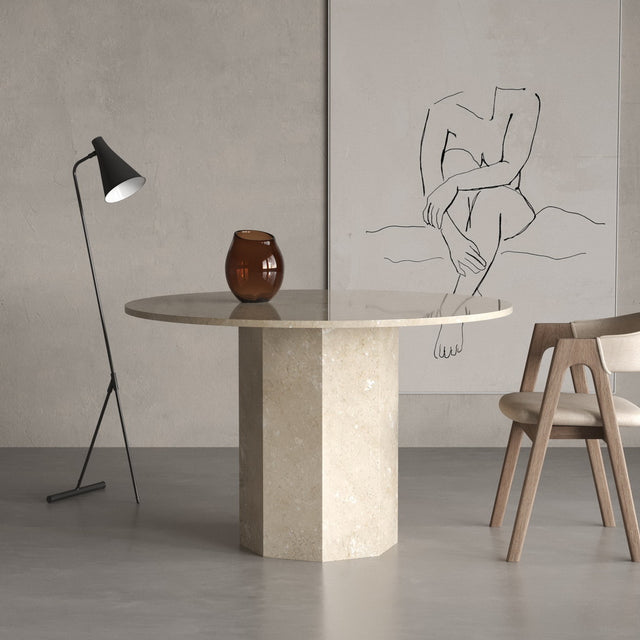 Ein historischer und zeitloser Kalkstein aus Spanien. Ca. 220 Millionen Jahre alt und wird in Pinoso abgebaut. Crema Marfil Marmor hat eine gleichmäßige cremefarbene Basis mit gelegentlichen hell- bis dunkelbraunen Adern, die ihm ein warmes und luxuriöses Aussehen verleihen. Er ist etwas sensibler gegenüber Feuchtigkeit und Kratzern, weshalb direkter Kontakt zu Getränken und Speisen vermieden werden sollte. Wir empfehlen hier Untersetzer zu verwenden, wenn der Stein beispielsweise für einen Esstisch ausgesucht wird.