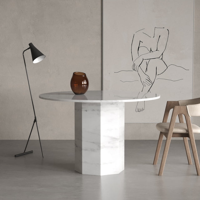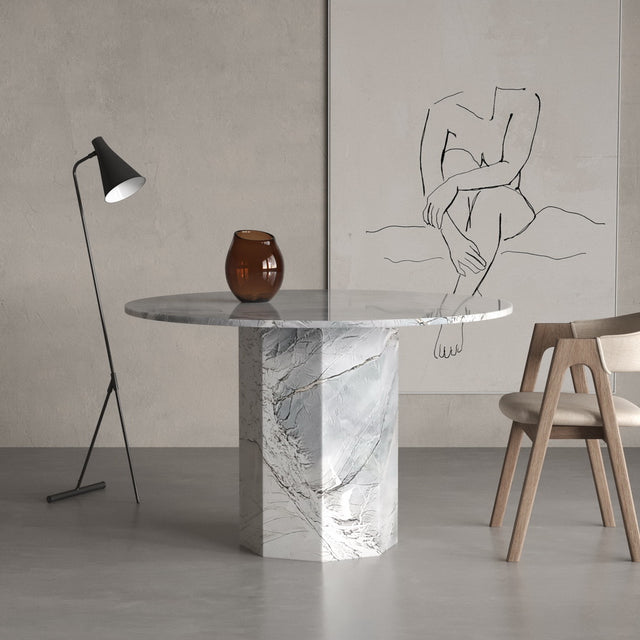 Unser Modell "Octagon" ist sehr hochwertig verarbeitet und besteht zu 100 % aus echtem Naturstein. Die massiven Platten sind im perfekten Winkel geklebt und gefast, sodass der achteckige Esstisch eine extrem hochwertige Oberfläche besitzt, die sich sanft anfühlt. Die achteckige und sehr minimalistische Form hat diesem Esstisch den Namen verliehen, der modern und zeitlos elegant ist.