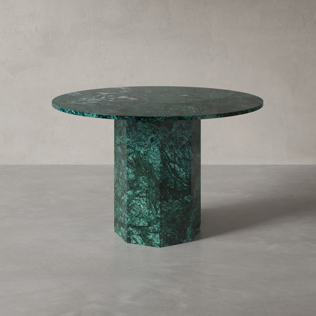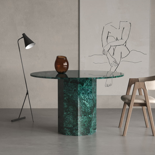 Ein tiefgrüner und 163 Millionen Jahre alter Naturstein aus Indien. Verde Guatemala Marmor zeigt eine lebendige, gleichmäßige Grüntöne, die ihm ein charaktervolles und ästhetisch ansprechendes Aussehen verleihen. Um seine Schönheit langfristig zu bewahren, ist es wichtig, direkten Kontakt mit Speisen und Getränken zu vermeiden, da er empfindlich gegenüber Säuren ist.