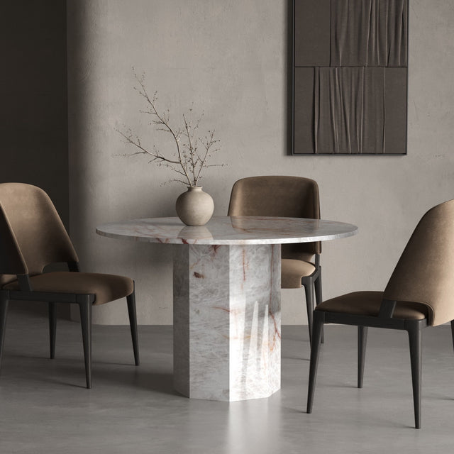 Unser Modell "Octagon" ist sehr hochwertig verarbeitet und besteht zu 100 % aus echtem Naturstein. Die massiven Platten sind im perfekten Winkel geklebt und gefast, sodass der achteckige Esstisch eine extrem hochwertige Oberfläche besitzt, die sich sanft anfühlt. Die achteckige und sehr minimalistische Form hat diesem Esstisch den Namen verliehen, der modern und zeitlos elegant ist. Der Esstisch Octagon ist Teil unserer Exclsuive Line und somit verwenden wir hierfür nur die exklusivsten Natursteine der Welt.